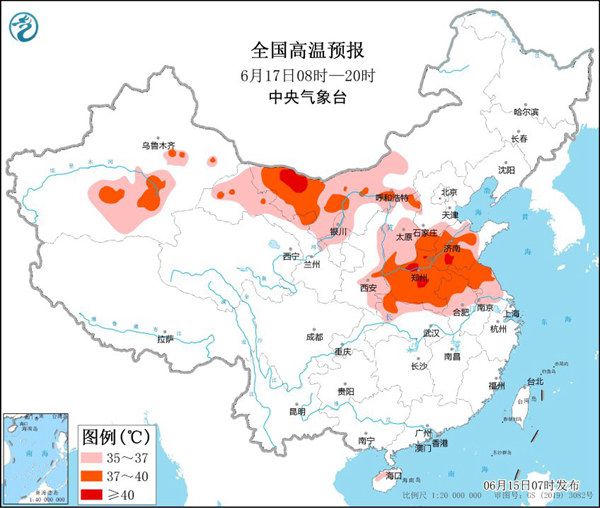 根據(jù)中央氣象臺預(yù)報,今天起至22日,北方多地將出現(xiàn)持續(xù)性高溫天氣,17至18日為最強時段。河北、河南、山東、湖北、江蘇、安徽、內(nèi)蒙古、陜西、山西、寧夏、新疆、甘肅等12省區(qū)部分地區(qū)日最高氣溫可達35℃至38℃,局部可達40℃左右。