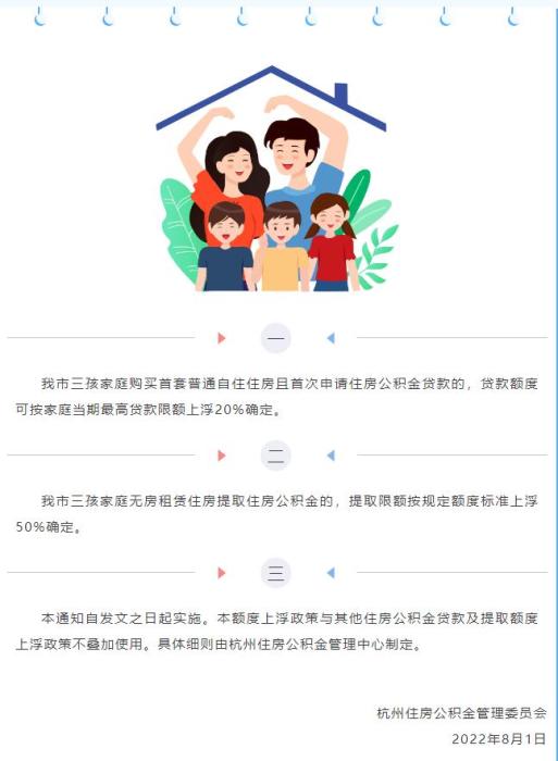中新網(wǎng)8月1日電 據(jù)“杭州公積金發(fā)布”公眾號(hào)8月1日消息,杭州住房公積金管理委員會(huì)發(fā)布通知,加大對(duì)三孩家庭解決基本住房問(wèn)題的支持力度。