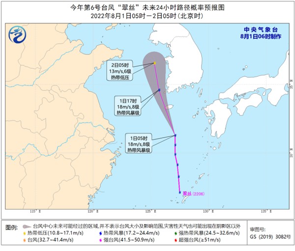 此外,今年第6號臺風(fēng)“翠絲”已于昨天下午生成,其中心今天早晨05時位于韓國濟(jì)州島南偏東方向約250公里的東海北部海面上,預(yù)計將以每小時30-35公里的速度向北偏西方向移動,強(qiáng)度逐漸減弱并消散。