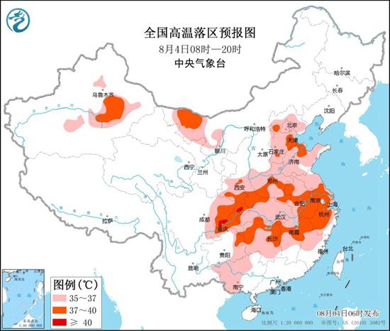 預計今天白天,陜西南部、河北大部、北京、天津、山東、河南、安徽、江蘇、上海、湖北、湖南大部、江西中北部、浙江、福建西北部、四川東部、重慶、貴州東部和南部、廣西西部等地有35℃以上的高溫天氣,其中,陜西南部、河北東部和南部、天津南部、山東北部、河南中南部、安徽西部和南部、江蘇中南部、上海大部、湖北西部、湖南北部、江西北部、浙江、四川東部、重慶、貴州東北部等地部分地區(qū)最高氣溫37~39℃,重慶局地可達40℃以上。