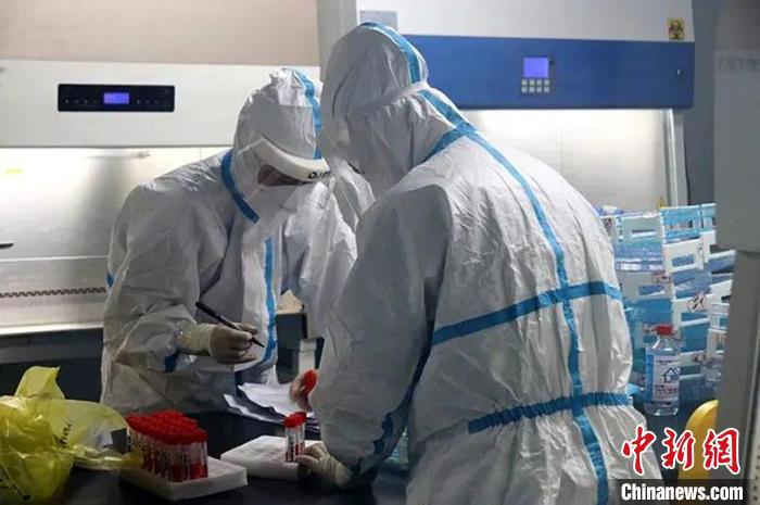 連夜檢驗剛送來的核酸檢測標(biāo)本。 新疆兵團(tuán)十三師紅星醫(yī)院提供