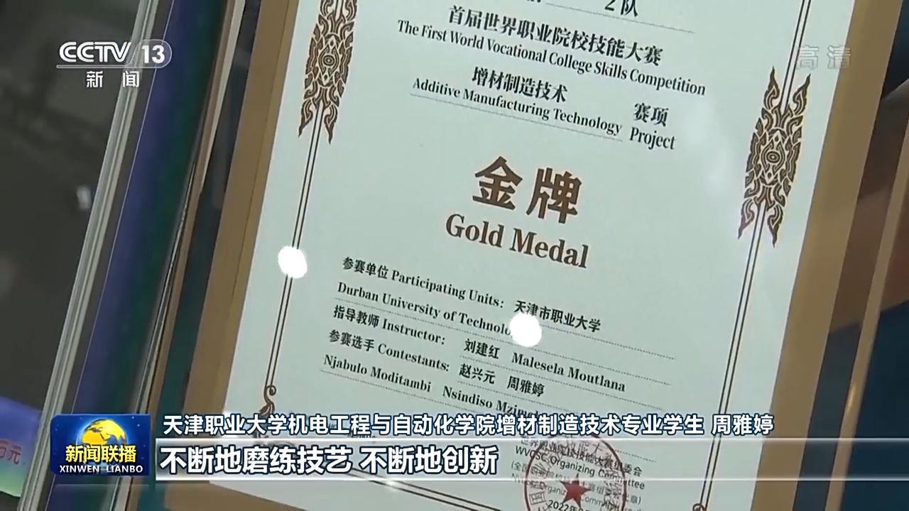天津職業(yè)大學(xué)機(jī)電工程與自動化學(xué)院增材制造技術(shù)專業(yè)學(xué)生 周雅婷:我覺得我是這個時代的幸運(yùn)兒,在(學(xué)校)實訓(xùn)基地,其實每天都是實戰(zhàn),我們的老師也是技能大師。以前我覺得大國重器是高不可攀的,當(dāng)我站在世界級的領(lǐng)獎臺上,我才發(fā)現(xiàn),將平凡做到極致,不斷地磨煉技藝、不斷地創(chuàng)新,也是在為制造大國重器蓄積力量。