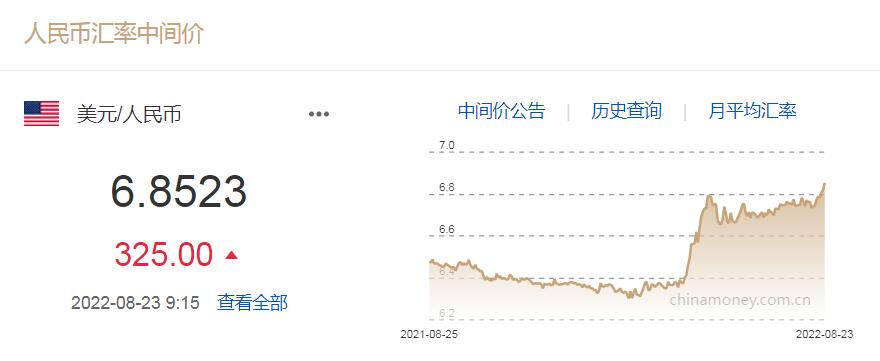 8月23日人民幣對美元中間價報6.8523 下調(diào)325個基點