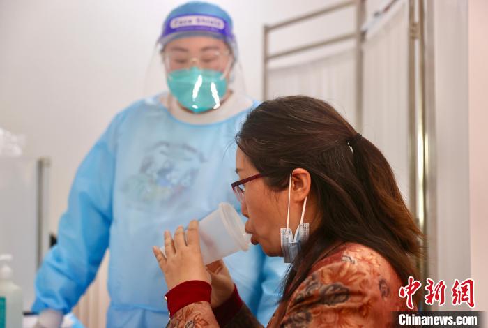 完成信息核對、流調(diào)、預(yù)檢和登記后,家住成壽寺街道的北京市民張玥16日下午體驗了吸入用新冠疫苗的接種。疫苗液通過霧化設(shè)備被霧化成細小的顆粒注入霧化杯,在疫苗液完成霧化后15秒內(nèi),張玥完成口含深吸接種過程,并憋氣5秒。張玥表示,他接種第二針肌注式新冠疫苗已經(jīng)滿半年,聽說有吸入用新冠疫苗,專門找家庭醫(yī)生預(yù)約。