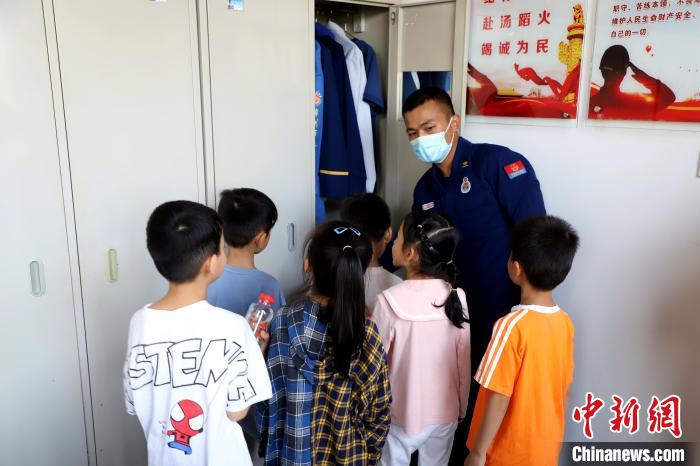 小朋友們參觀消防員房間?!〔淘鲂馈z