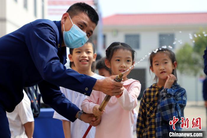 小朋友們親身體驗滅火裝備器材?!〔淘鲂?攝