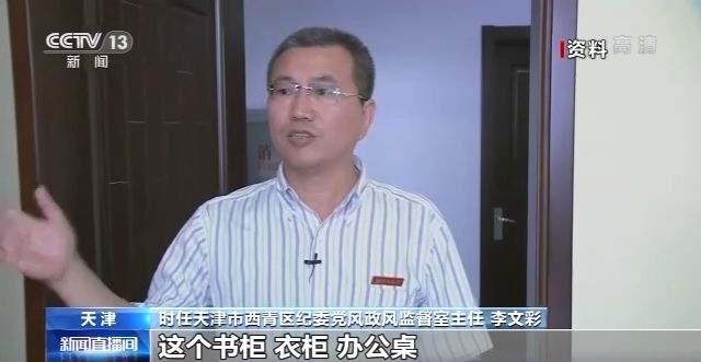 時任天津市西青區(qū)紀(jì)委黨風(fēng)政風(fēng)監(jiān)督室主任 李文彩:進(jìn)來以后我們可以看到,書柜、衣柜、辦公桌跟普通的這個辦公用房是一模一樣的。在勘查的過程當(dāng)中,我們發(fā)現(xiàn)這個衣柜透出一道亮光,我們覺得挺可疑,打開以后里面掛著衣服,這個衣柜沒有了后擋板,直通里間,儼然就是一個暗門。這個里間里邊,床鋪、電視、衣柜、冰箱、衛(wèi)生間、洗浴設(shè)施一應(yīng)俱全的。