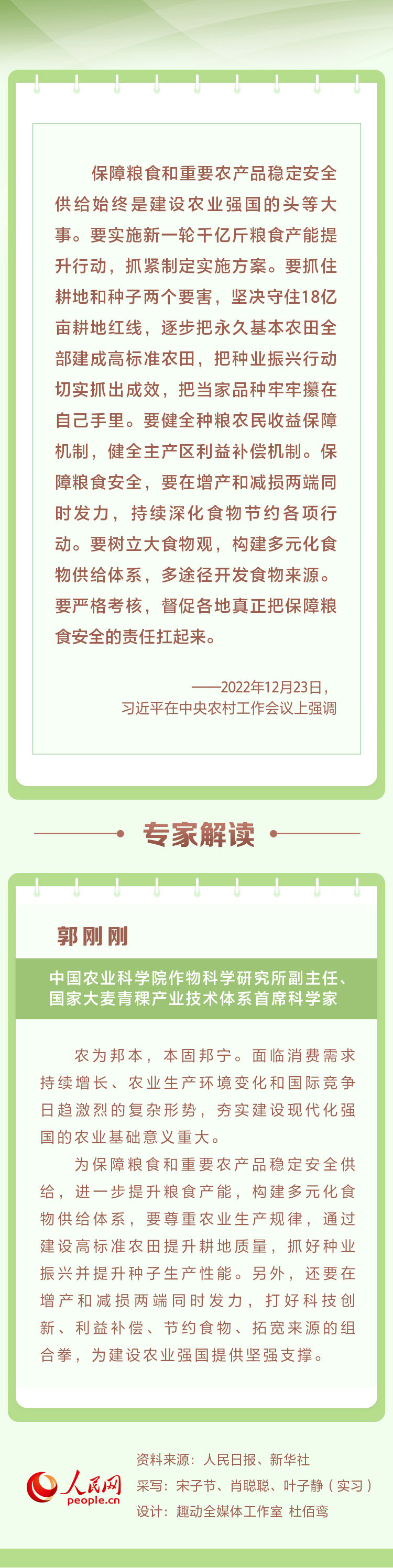 12月23日至24日,中央農(nóng)村工作會(huì)議在北京舉行。中共中央總書記、國(guó)家主席、中央軍委主席習(xí)近平出席會(huì)議并發(fā)表重要講話。人民網(wǎng)帶您重溫講話要點(diǎn)并邀請(qǐng)專家進(jìn)行解讀。本期聚焦“保障糧食和重要農(nóng)產(chǎn)品穩(wěn)定安全供給始終是建設(shè)農(nóng)業(yè)強(qiáng)國(guó)的頭等大事”。