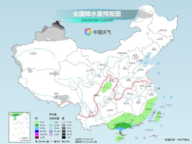 降水方面,今天,我國降水區(qū)域仍集中在一南一北:新疆北部及華南地區(qū),新疆多地有強(qiáng)降雪現(xiàn)身,廣東、廣西的部分地區(qū)或有大雨。具體來看,今天,內(nèi)蒙古東北部、新疆北部和西部山區(qū)等地部分地區(qū)有小到中雪,其中,新疆北疆北部等地部分地區(qū)有大到暴雪(10~19毫米)。江南東南部、華南大部、臺(tái)灣島等地部分地區(qū)有小到中雨,其中,廣西東南部沿海、廣東西南部等地部分地區(qū)有大雨。