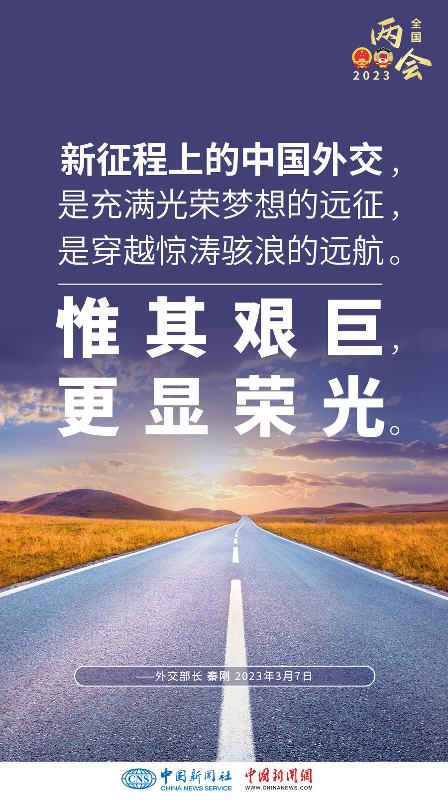 秦剛:當(dāng)今世界并不太平,動蕩與變革交織,團(tuán)結(jié)與分裂碰撞,機(jī)遇與挑戰(zhàn)并存。新征程上的中國外交,是充滿光榮夢想的遠(yuǎn)征,是穿越驚濤駭浪的遠(yuǎn)航。惟其艱巨,更顯榮光。我們將在以習(xí)近平同志為核心的黨中央堅強(qiáng)領(lǐng)導(dǎo)下,踐行習(xí)近平外交思想,貫徹黨的二十大精神,始終堅持維護(hù)世界和平、促進(jìn)共同發(fā)展的外交政策宗旨,迎難而上,勇于擔(dān)當(dāng),為全面建設(shè)社會主義現(xiàn)代化國家營造良好外部環(huán)境,書寫新時代中國特色大國外交新篇章。