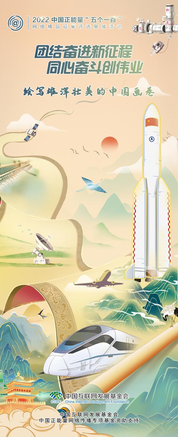 今日之中國,江山壯麗、人民豪邁,處處煥發(fā)著蓬勃的生機,升騰著發(fā)展的希望。從浩瀚蒼穹,神舟十五號航天員乘組漫步太空,中國空間站全面建成后首次出艙活動圓滿成功,到汽笛嘹亮、時速350公里的復興號馳騁神州,再到中國制造,首架國產(chǎn)客機C919正式交付……70多年來,在14億多中華兒女的拼搏奮斗中,中國創(chuàng)造了人類發(fā)展史上的奇跡?!拔鍌€一百”繪寫壯麗時代的多彩卷軸,展現(xiàn)奮進中國的精彩圖景,洋溢其中的每一份中國正能量,鼓舞人們奮發(fā)圖強,再續(xù)輝煌篇章。