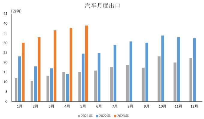 2023年5月,汽車(chē)企業(yè)出口38.9萬(wàn)輛,環(huán)比增長(zhǎng)3.4%,同比增長(zhǎng)58.7%。