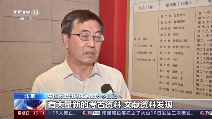 中國歷史研究院副院長 李國強:那么距離今天我們前一部通史已經(jīng)過去20多年,在20多年的時間里邊,有大量新的考古資料、文獻資料發(fā)現(xiàn),那么需要以新的史料、新的理論、新的方法來觀察中國歷史?!?新編)中國通史》跨時代跨度非常長,一直從史前時期,寫到黨的二十大,這樣一個時間跨度,在過去的通史編纂當中是前所未有的。同時我們《(新編)中國通史》也采取了斷代史與專門史相結(jié)合的這樣一個全新體例,這在以往也是前所未有的。