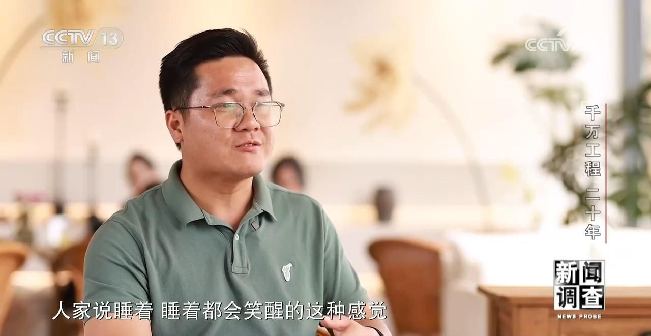 浙江安吉靈峰街道大竹園村返鄉(xiāng)創(chuàng)業(yè)青年 沈金龍:真正20多年,不管是經(jīng)濟(jì)還是質(zhì)感全部在提升,我們以前從來沒想過我們老百姓能住到像我們農(nóng)房試點(diǎn)這種房子,就是庭院、小橋流水這種房子,哪會想到,現(xiàn)在老百姓住在里面。而且不光是自己住,他還經(jīng)營起來了,還能靠著這個房子、這個環(huán)境變現(xiàn)。甚至我們現(xiàn)在都想想,人家說睡著、睡著都會笑醒的這種感覺,真是太美了。
