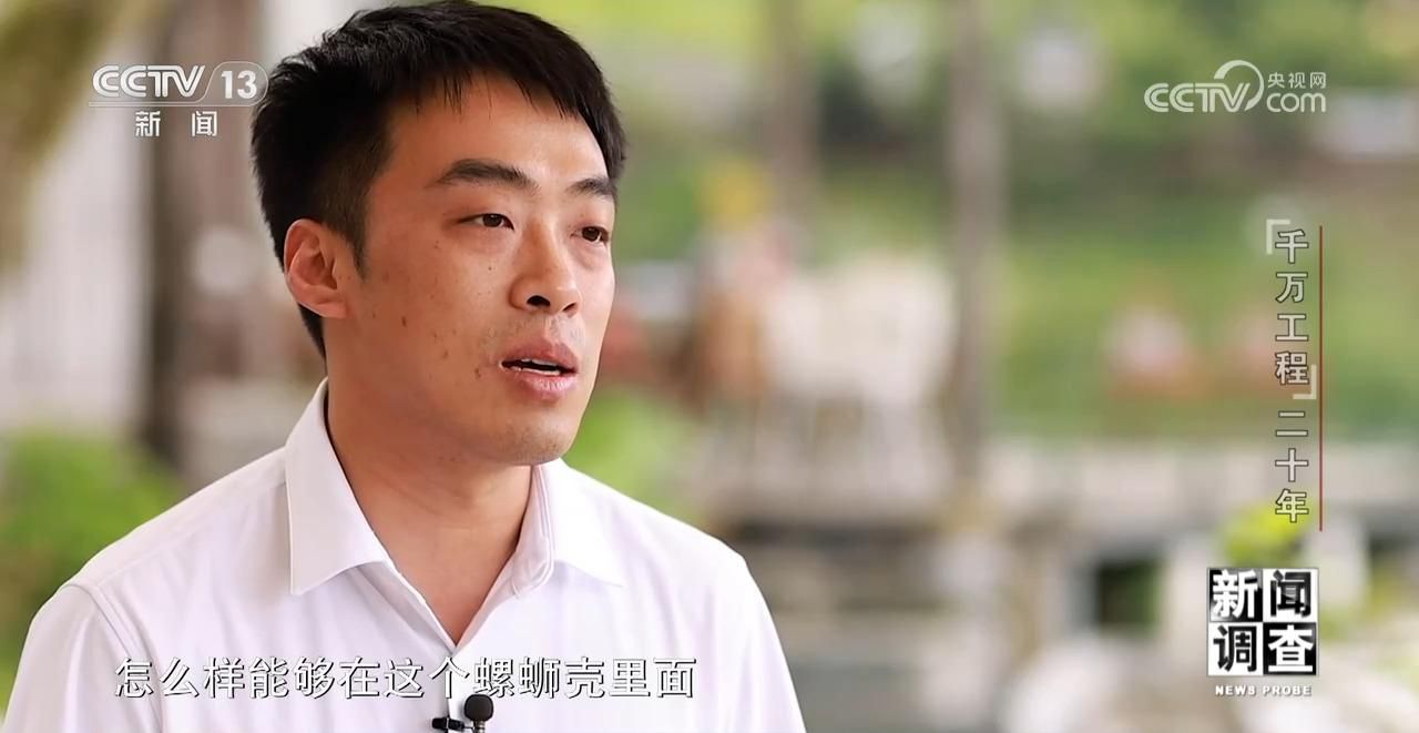 浙江東陽三單鄉(xiāng)黨委書記 朱靜超:我家門口一腳踩出去,可能就是我這個基本農(nóng)田,什么都不能動的,或者說我剛剛站起身來碰到這個樹,就是我們的這個生態(tài)公益林,也是不能動的,所以當(dāng)時幾任我們的黨委政府也是一直在這里思考,怎么樣能夠在這個螺螄殼里面,怎么樣這個道場能夠把它做好。