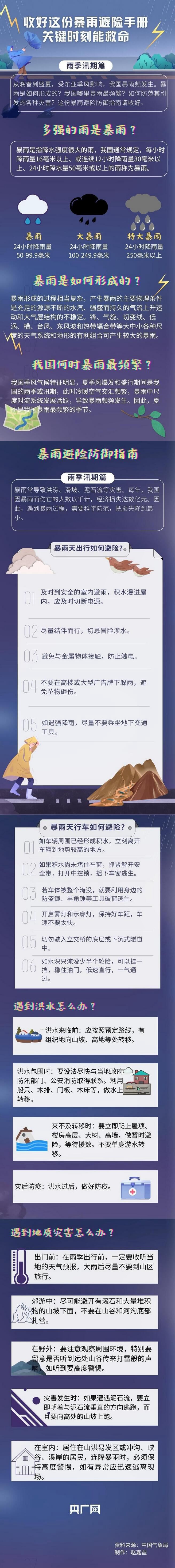 央廣網(wǎng)長春7月5日消息(記者郭東隅)正值汛期,我國多地遭遇今年以來最強降雨過程,出現(xiàn)暴雨、大暴雨甚至特大暴雨。那么,暴雨究竟是如何形成的?如何防范其引發(fā)的各種災(zāi)害?這份暴雨避險防御指南請收好,關(guān)鍵時刻能救命。