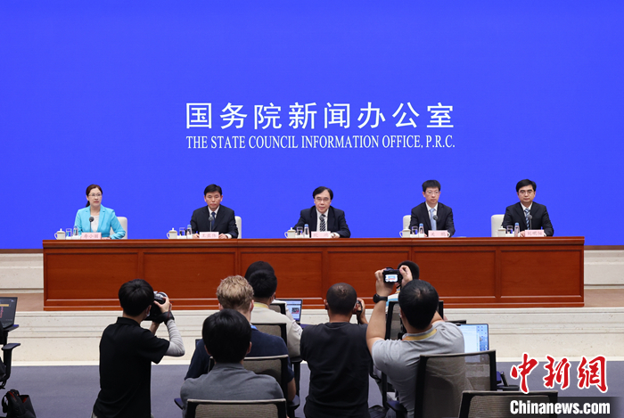 7月26日,中國國務院新聞辦公室在北京舉行國務院政策例行吹風會,國家發(fā)展改革委副秘書長歐鴻、經(jīng)濟運行調(diào)節(jié)局負責人關(guān)鵬,中國氣象局應急減災與公共服務司負責人王亞偉,國家能源局電力司負責人劉明陽介紹迎峰度夏能源電力安全保供有關(guān)情況,并答記者問。 中新社記者 楊可佳 攝