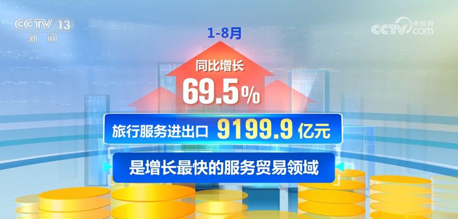 旅行服務(wù)持續(xù)恢復(fù)。1—8月,旅行服務(wù)進(jìn)出口9199.9億元,同比增長(zhǎng)69.5%,是增長(zhǎng)最快的服務(wù)貿(mào)易領(lǐng)域。其中,出口增長(zhǎng)54.9%,進(jìn)口增長(zhǎng)70.7%。