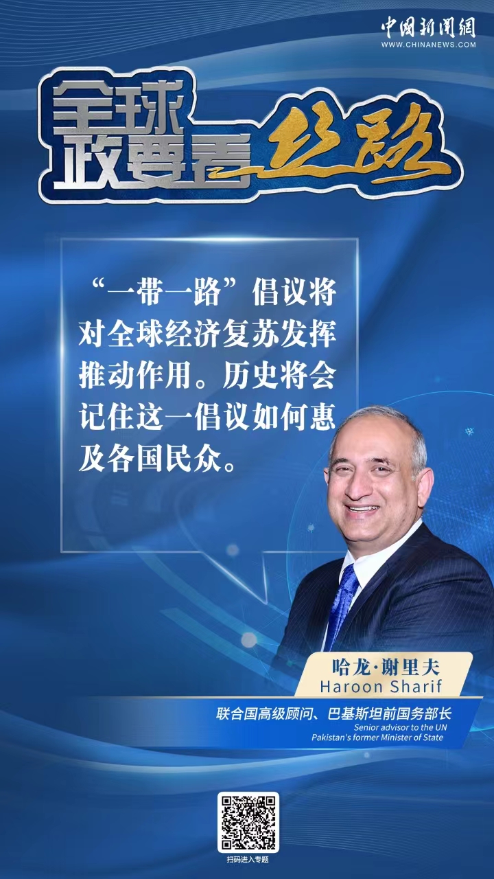 聯(lián)合國(guó)高級(jí)顧問、巴基斯坦前國(guó)務(wù)部長(zhǎng)哈龍·謝里夫指出,“一帶一路”倡議將對(duì)全球經(jīng)濟(jì)復(fù)蘇發(fā)揮推動(dòng)作用。歷史將會(huì)記住這一倡議如何惠及各國(guó)民眾。
