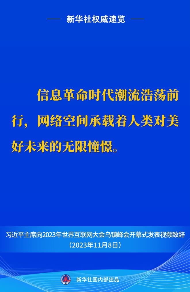 新華社權(quán)威速覽丨習(xí)近平主席向2023年世界互聯(lián)網(wǎng)大會烏鎮(zhèn)峰會開幕式視頻致辭金句