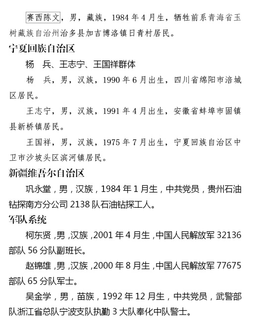 2023年第四季度見義勇為勇士榜名單 來源:中央政法委長安劍微信公眾號