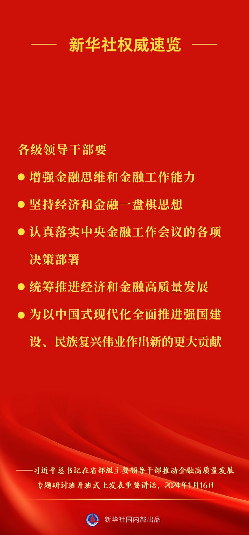 新華社權(quán)威速覽 | 習(xí)近平總書記在推動金融高質(zhì)量發(fā)展專題研討班上重要講話要點