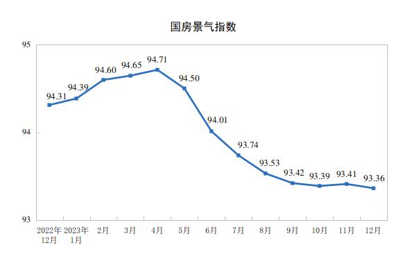 2023年12月份,房地產(chǎn)開發(fā)景氣指數(shù)(簡(jiǎn)稱“國房景氣指數(shù)”)為93.36。