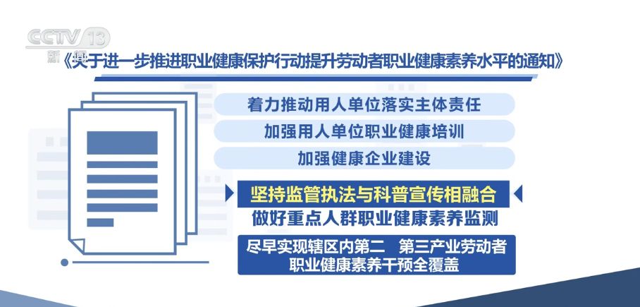 《通知》指出,著力推動用人單位落實(shí)主體責(zé)任,加強(qiáng)用人單位職業(yè)健康培訓(xùn),加強(qiáng)健康企業(yè)建設(shè)。堅持監(jiān)管執(zhí)法與科普宣傳相融合,做好重點(diǎn)人群職業(yè)健康素養(yǎng)監(jiān)測,盡早實(shí)現(xiàn)轄區(qū)內(nèi)第二、第三產(chǎn)業(yè)勞動者職業(yè)健康素養(yǎng)干預(yù)全覆蓋。發(fā)揮專業(yè)機(jī)構(gòu)作用,推進(jìn)職業(yè)健康知識進(jìn)機(jī)構(gòu)、進(jìn)企業(yè)、進(jìn)學(xué)校、進(jìn)鄉(xiāng)村、進(jìn)社區(qū)“五進(jìn)”活動。各級職業(yè)病防治機(jī)構(gòu)、疾控中心要發(fā)揮科普宣傳主力軍作用,普及職業(yè)健康知識,探索建立科普宣傳工作激勵機(jī)制。鼓勵第二、第三產(chǎn)業(yè)勞動者集中的地區(qū)建設(shè)職業(yè)健康體驗場館等科普宣傳陣地,建設(shè)省級職業(yè)健康科普資源庫。