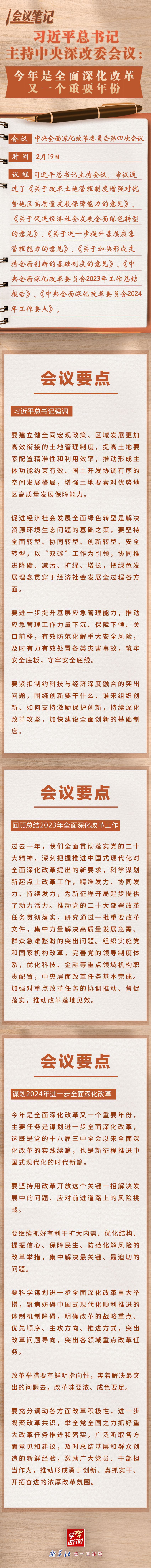 學習進行時丨會議筆記:習近平總書記主持中央深改委會議:今年是全面深化改革又一個重要年份