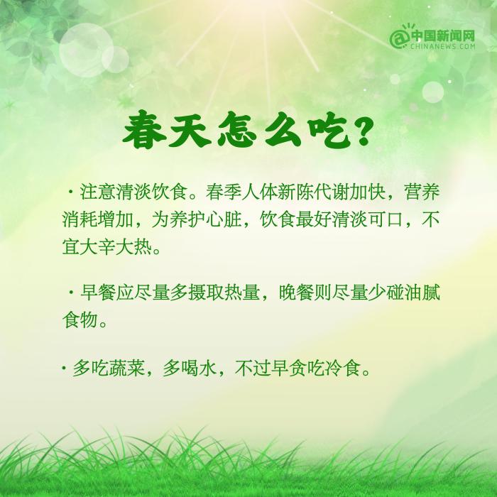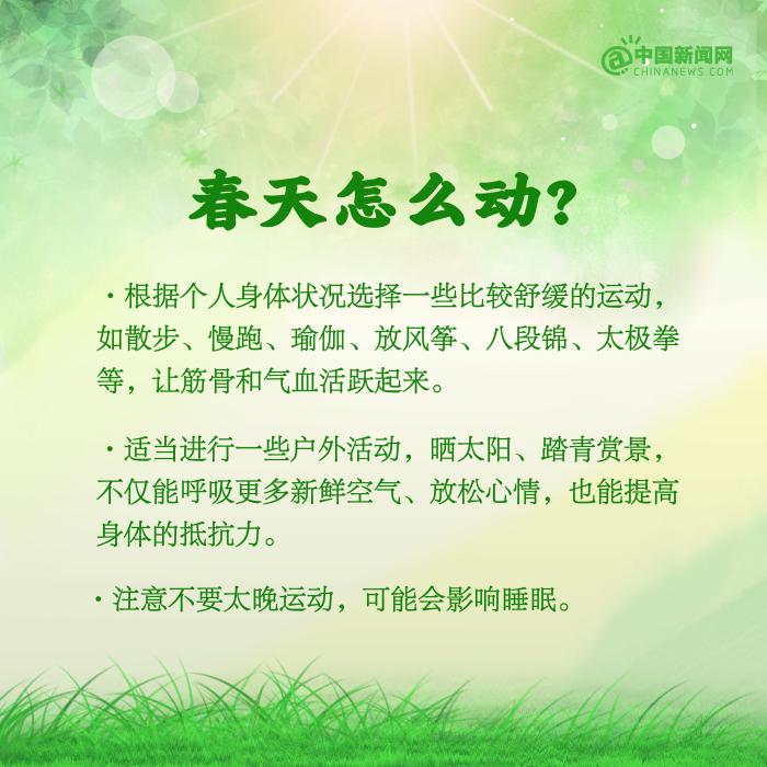 春天是萬(wàn)物復(fù)蘇的季節(jié),也是調(diào)養(yǎng)身體的好時(shí)節(jié)。①每天保證6~8小時(shí)的睡眠,避免熬夜;②適當(dāng)進(jìn)行一些戶外活動(dòng),曬太陽(yáng)、踏青賞景等;③不過(guò)早減衣,穿衣注意下厚上薄;④注意清淡飲食,多吃蔬菜,多喝水……春季養(yǎng)生要注意什么?詳戳↓↓