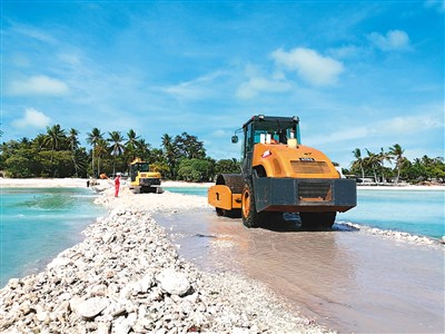 在基里巴斯首都塔拉瓦,中國(guó)企業(yè)正在為當(dāng)?shù)孛癖娦拗蛔銟颉?/p>