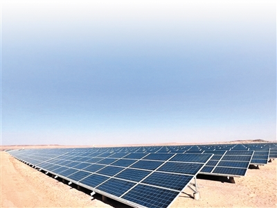 中國(guó)電建在阿爾及利亞撒哈拉沙漠中建設(shè)的光伏電站。
