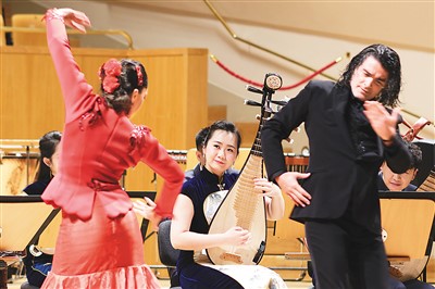 音樂會在一曲熱烈歡快的《春節(jié)序曲》中拉開序幕。兩國樂團合奏的新創(chuàng)曲目《陽光永遠照耀著我們的友誼》融合了中西音樂特色,令觀眾耳目一新;京劇《貴妃醉酒》向西班牙觀眾展現(xiàn)了中國傳統(tǒng)戲曲文化的獨特風采;西班牙歌唱家用中文和西文演唱《我愛你中國》,以歌聲傳遞了兩國民眾間的友好情誼;中國樂器笙演奏的《西班牙斗牛曲》“混搭”西班牙“國粹”弗拉門戈舞蹈,更是令人擊節(jié)叫好。兩國藝術(shù)家以樂會友、以藝通心,通過中西音樂元素的碰撞與交融,展現(xiàn)了東西方文化的互融互鑒。