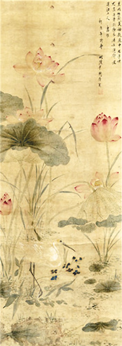 展覽畫(huà)作之一:唐宇昭《荷鷺圖軸》