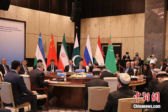 當(dāng)?shù)貢r(shí)間4月13日,烏茲別克斯坦撒馬爾罕,第四次阿富汗鄰國外長會(huì)舉行。 中新社記者 張碩 攝
