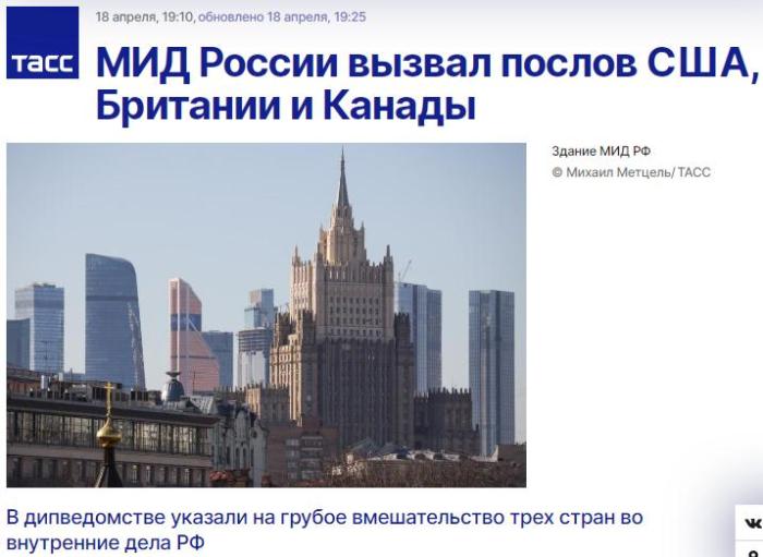 據(jù)報(bào)道,俄外交部表示,“由于粗暴干涉俄羅斯內(nèi)部事務(wù)和從事不符合外交地位的活動(dòng),美國(guó)、英國(guó)和加拿大的大使被俄外交部召見(jiàn)?!?/p>