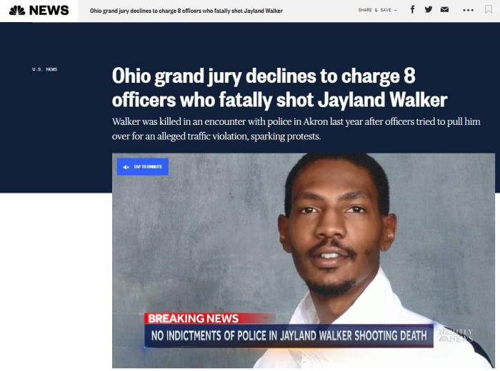 NBC指出,沃克之死引發(fā)了阿克倫數(shù)日的示威活動(dòng),并再次引發(fā)了關(guān)于警察針對(duì)非裔暴力執(zhí)法的抗議。