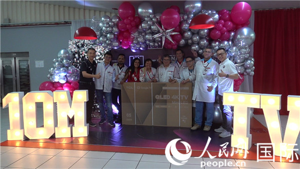 中巴員工利用午飯空閑時間一起紀念第1000萬臺電視機下線。人民網(wǎng)記者吳杰 攝