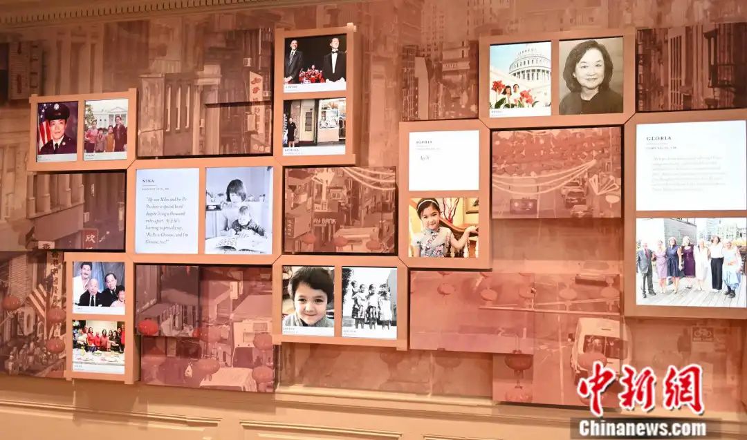 華盛頓美國華人博物館內的美國華人數(shù)字照片墻。陳孟統(tǒng)攝