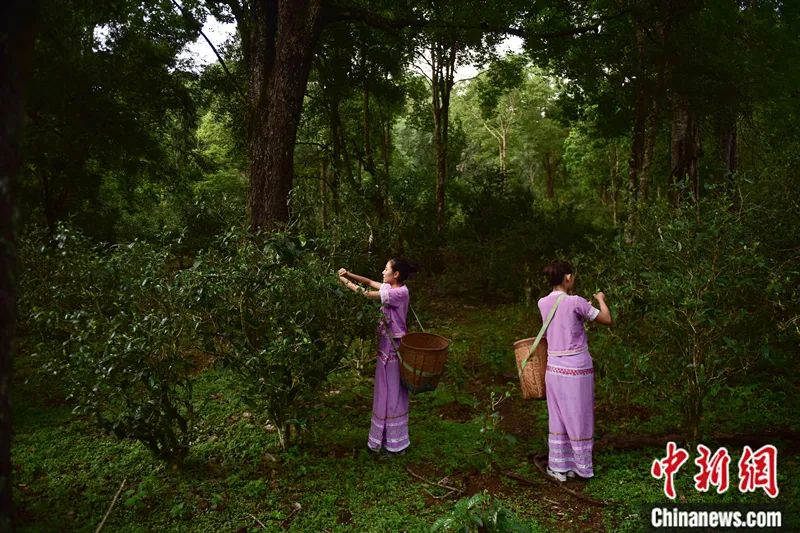 2016年5月,云南普洱,當(dāng)?shù)卮迕裨诰斑~山古茶園采茶,這里的茶樹(shù)樹(shù)齡大多在百年以上。劉冉陽(yáng) 攝