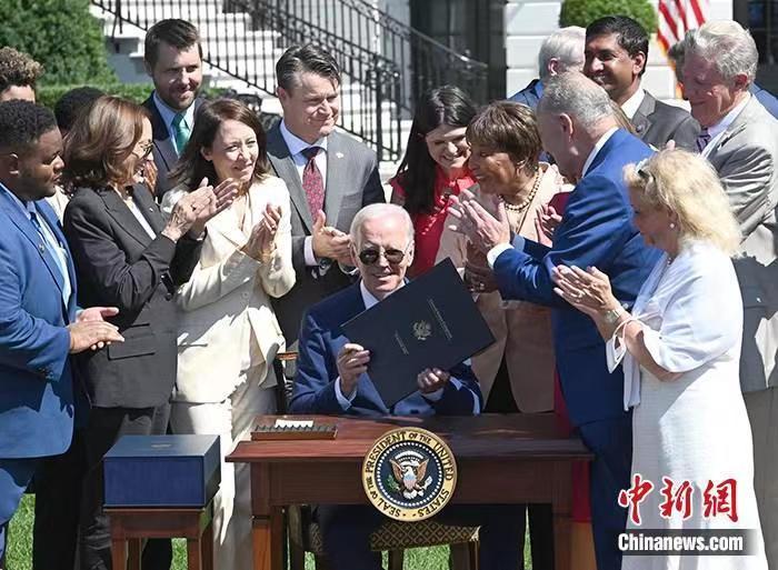 資料圖:當(dāng)?shù)貢r(shí)間8月9日,美國總統(tǒng)拜登在白宮簽署《芯片和科學(xué)法案》。 中新社記者 陳孟統(tǒng) 攝