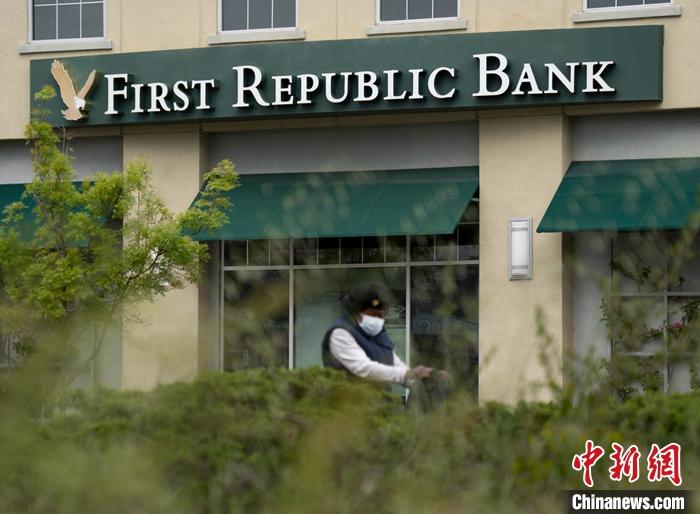 當?shù)貢r間5月1日,行人從美國加州米爾布雷市一家第一共和銀行附近經(jīng)過。 中新社記者 劉關(guān)關(guān) 攝