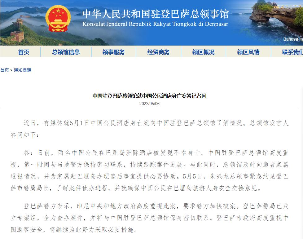 - 中國(guó)駐登巴薩總領(lǐng)館就中國(guó)公民酒店身亡案答記者問