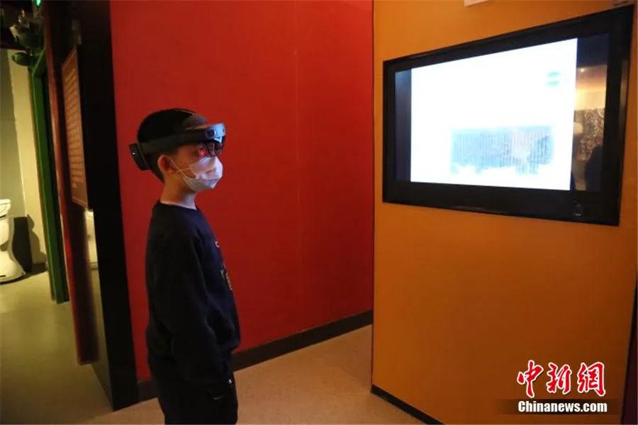 新疆哈密市小朋友利用MR眼鏡對(duì)彌勒會(huì)見記進(jìn)行參觀體驗(yàn)。新疆哈密市博物館 供圖