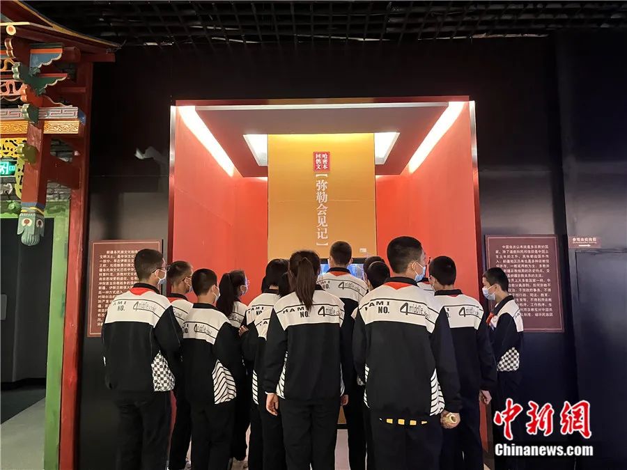 運(yùn)用現(xiàn)代科技手段展示的彌勒會(huì)見記受到學(xué)生的關(guān)注和喜愛。新疆哈密市博物館 供圖
