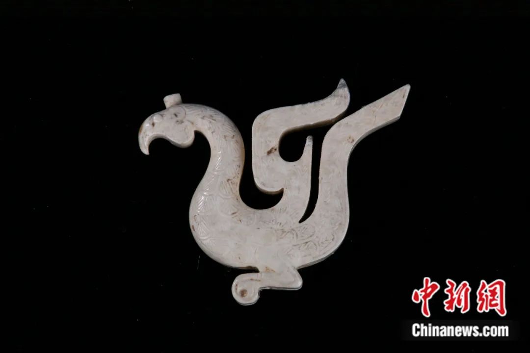 中新社記者:請介紹一下玉飛鳳的出土過程。玉飛鳳的特色、工藝、文化意義及其珍貴之處體現(xiàn)在哪里?