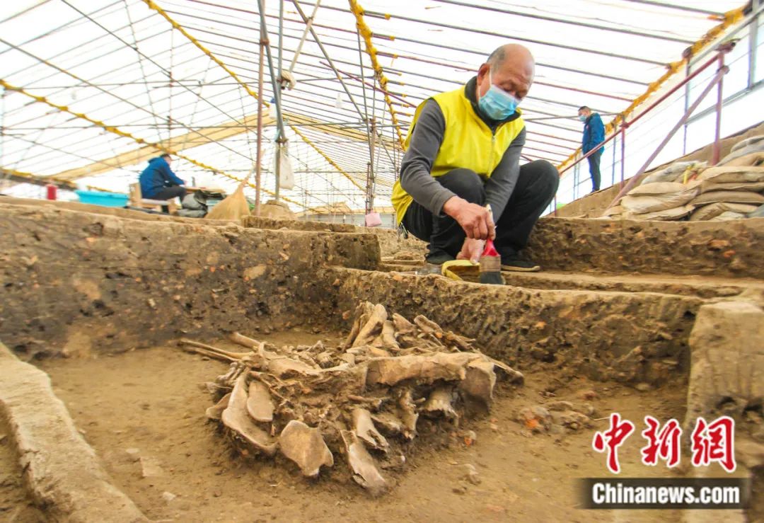 工作人員在河南南陽黃山遺址考古發(fā)掘現(xiàn)場進(jìn)行清理作業(yè)。高嵩 攝