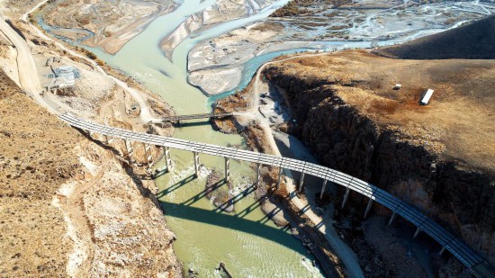 這是2020年10月27日在吉爾吉斯斯坦拍攝的新北南公路二期工程施工現(xiàn)場。新華社發(fā)