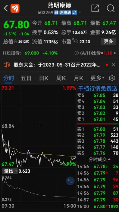 藥明康德17日股價(jià)走勢