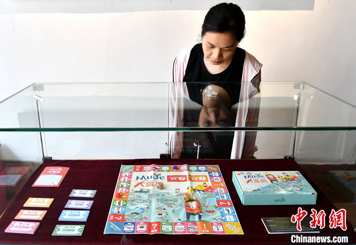 圖為臺(tái)灣文創(chuàng)產(chǎn)品《Muse17同樂(lè)游—大富翁桌游盒》吸引參觀者。 中新社記者 呂明 攝